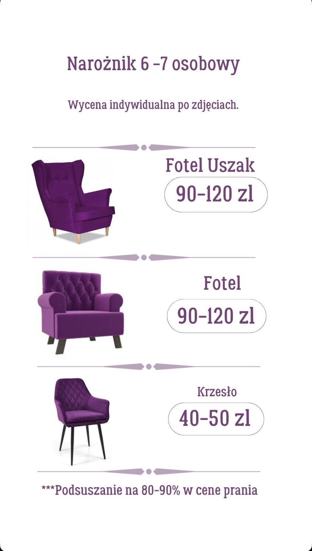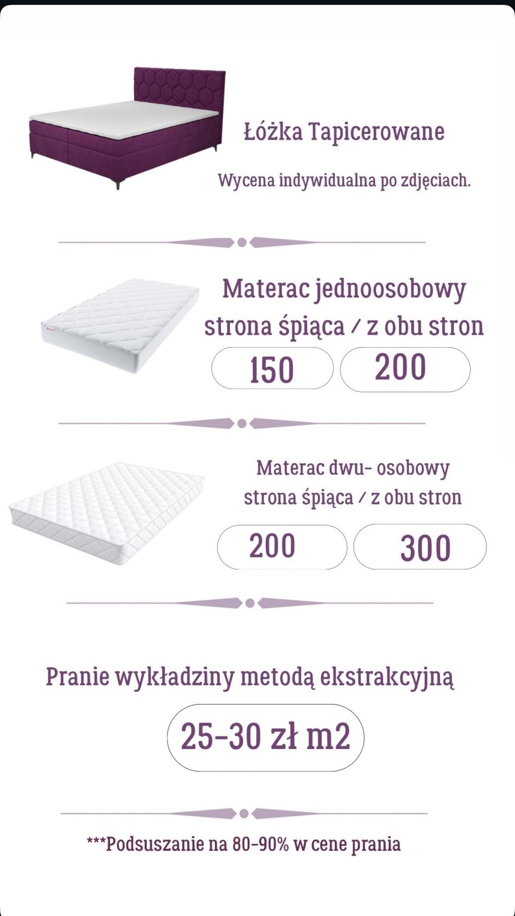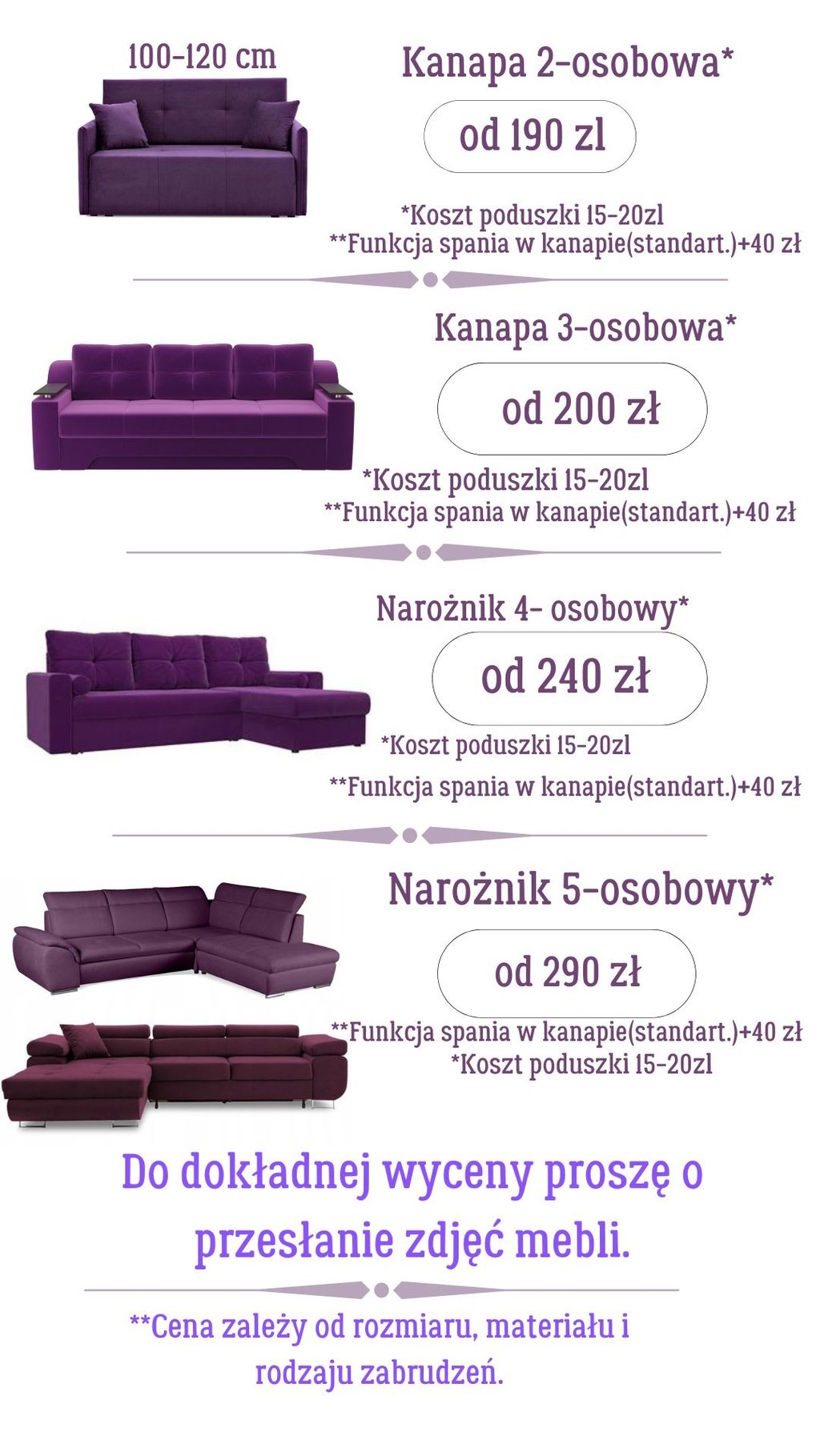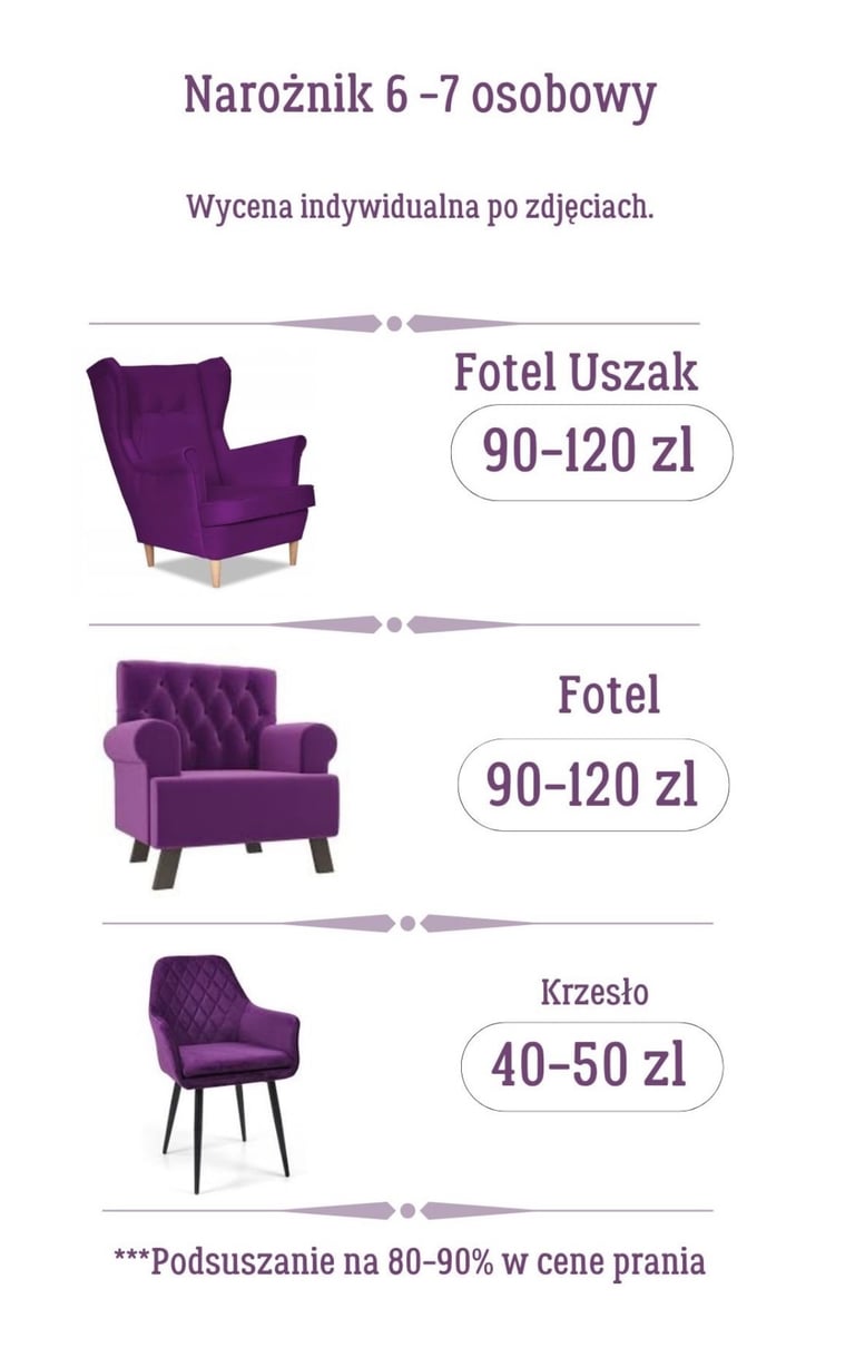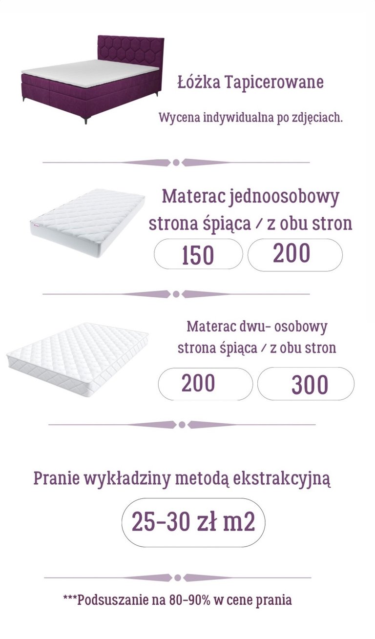 Cena zależy od stopnia zabrudzenia, materiału i wielkości mebla.